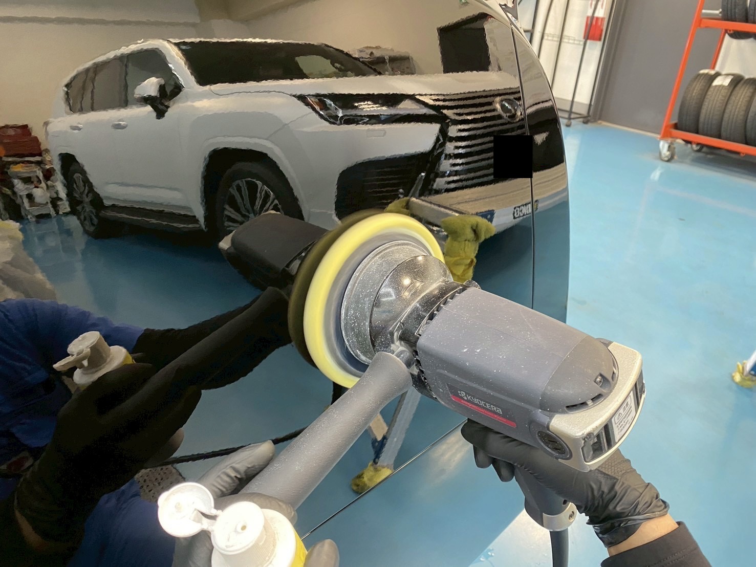 また、細かい埃や花粉、廃棄ガス等を遮断するスペースで研磨やコーティングを施工することで、仕上がりがよりキレイになります!