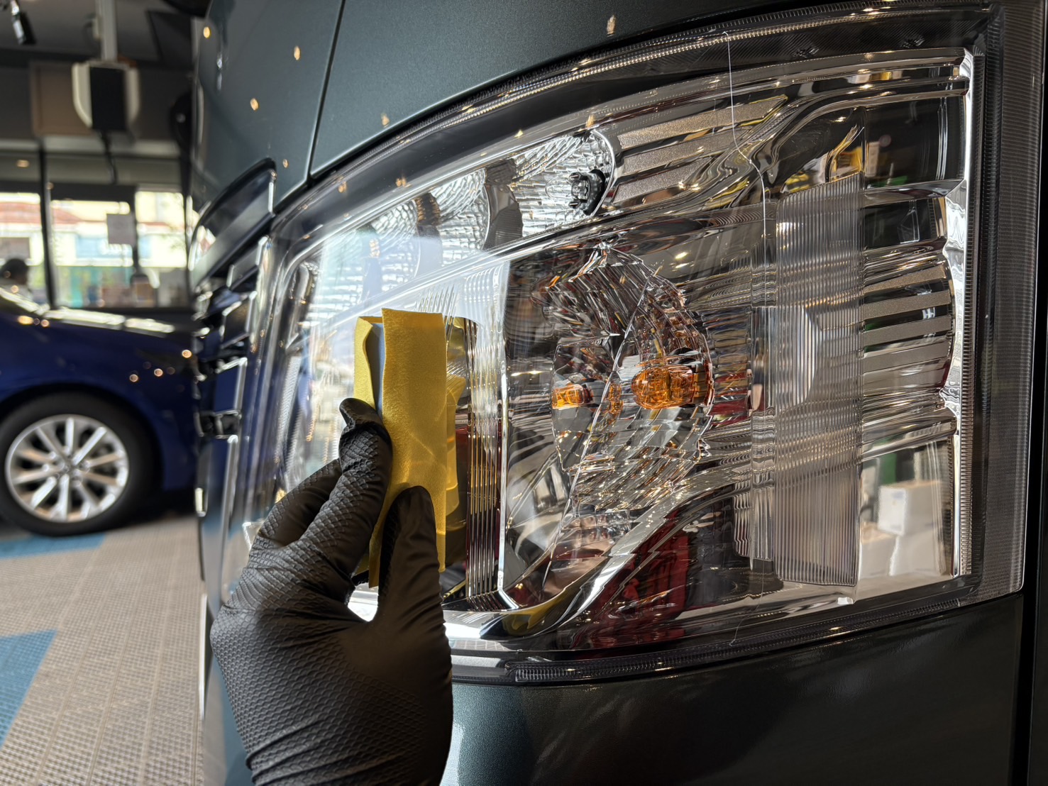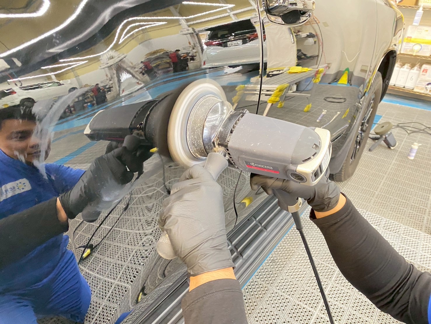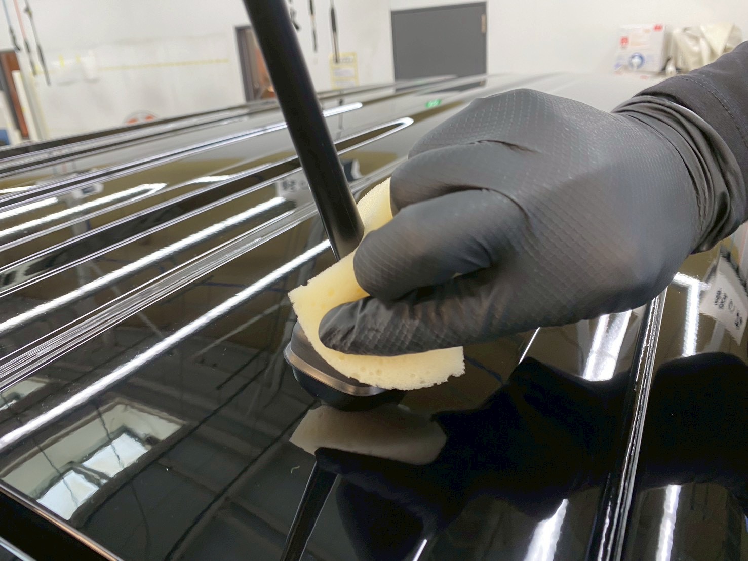 また、細かい埃や花粉、廃棄ガス等を遮断するスペースで研磨やコーティングを施工することで、仕上がりがよりキレイになります!