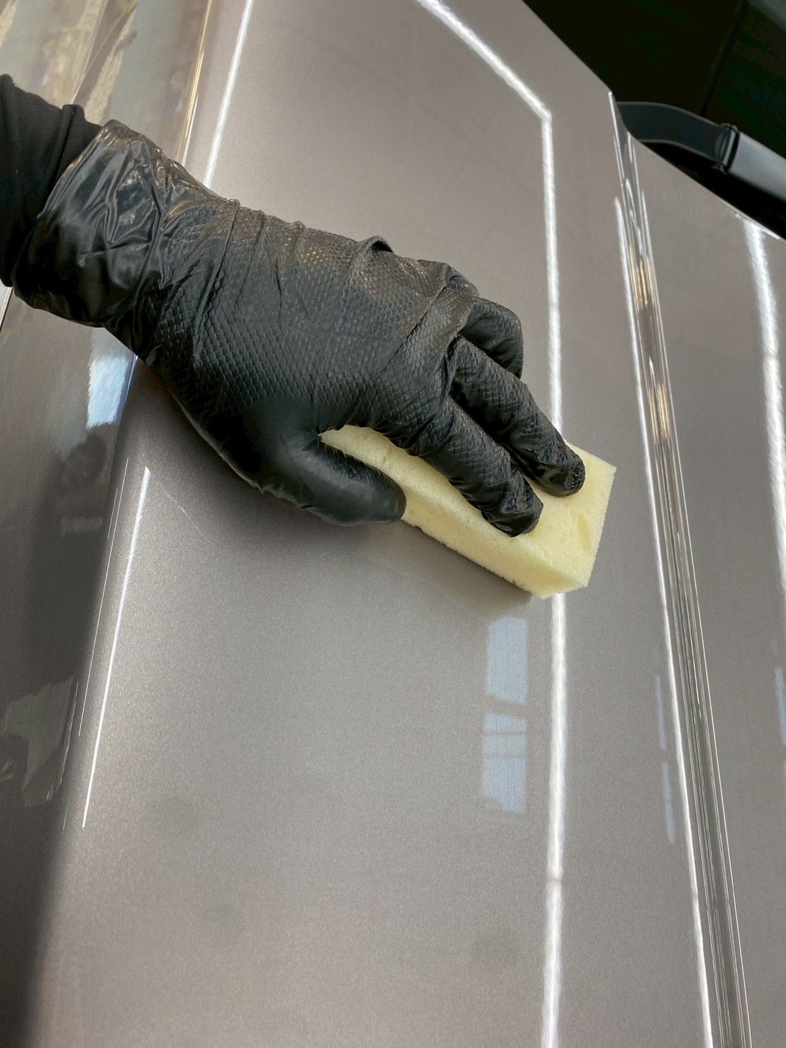 中古車へのクリスタルグロウ施工でした。光の角度でうずまき傷が目立ってたのですが、施工後は全く目立たなくなって一層クリアーが乗った感じで色に深みが出ました。丁寧な施工と商談でこちらのお店を選んで良かったです(泉大津店)