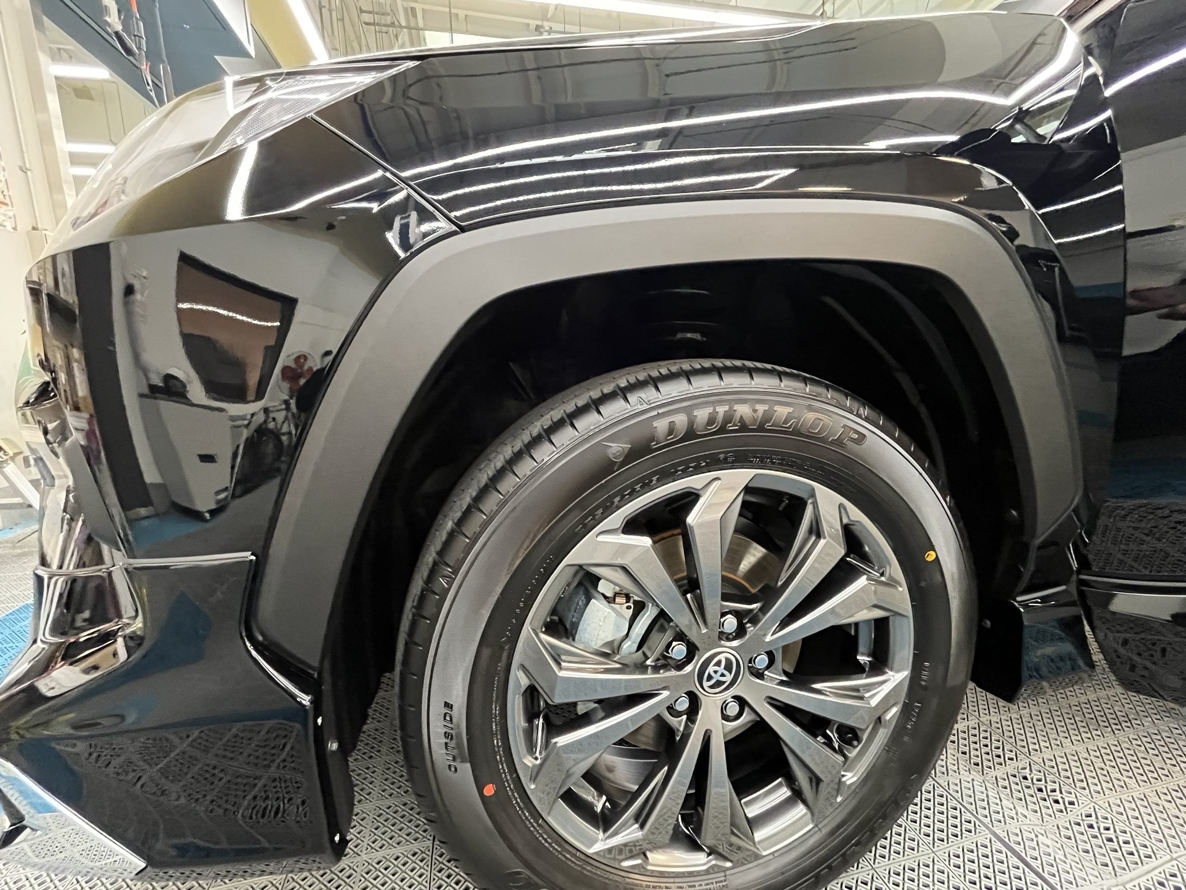 今回はボディだけでなく、ヘッドライトやホイール、樹脂パーツ、メッキパーツ、全面ウィンドウガラスのパーツコーティングもセットになったメニューをご選択いただきました。