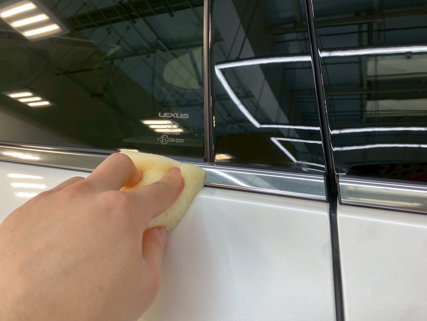 プロテクションフィルム施工前に研磨を行い下地処理を行います。