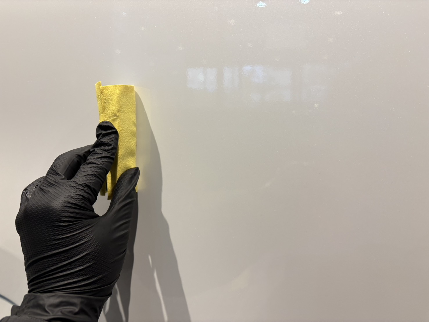 コーティング剤を乾燥させた後に、ふき取りを行います。