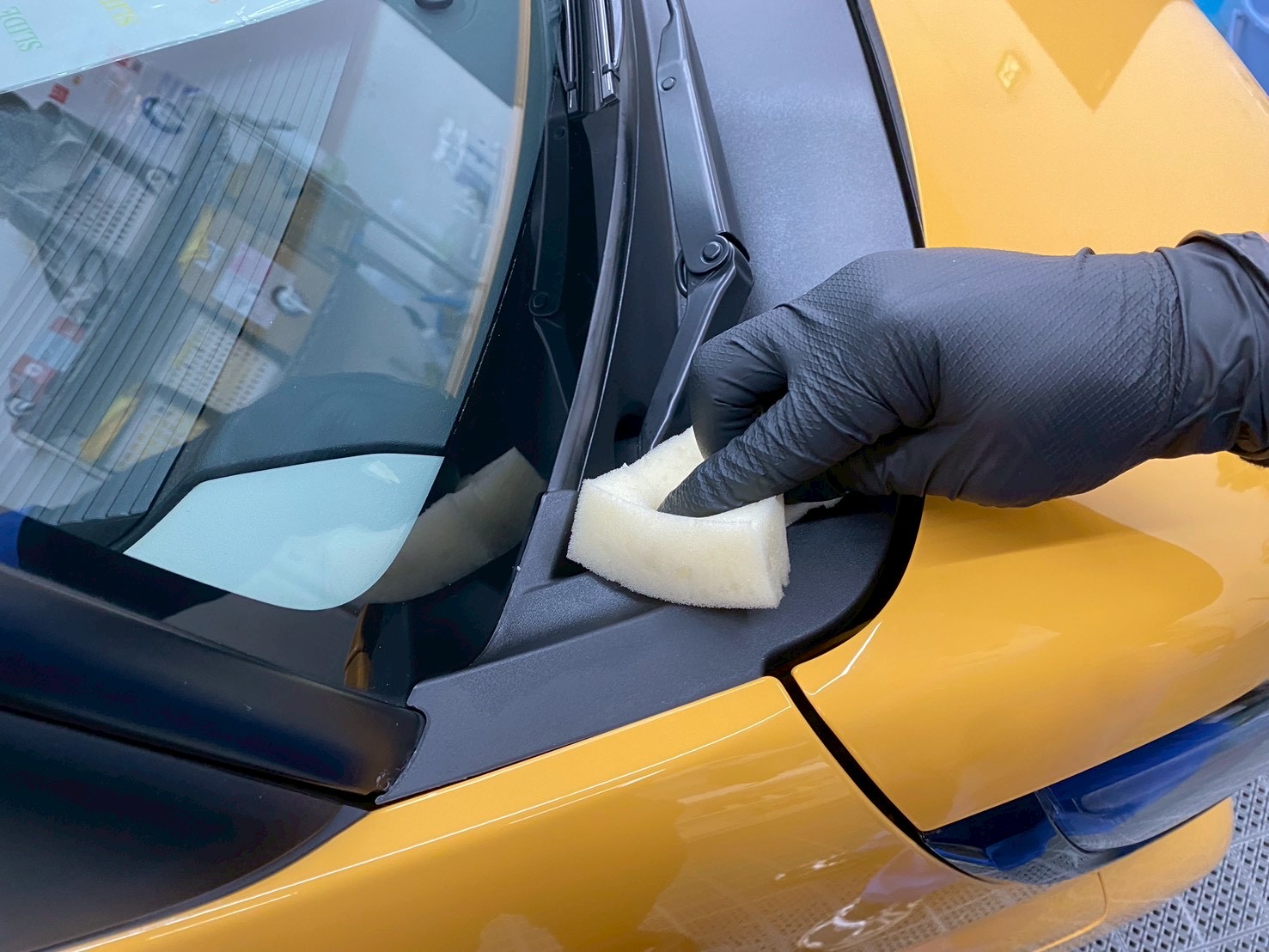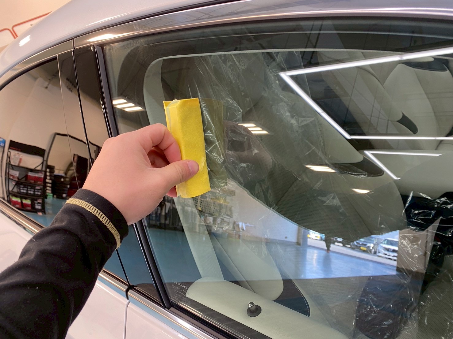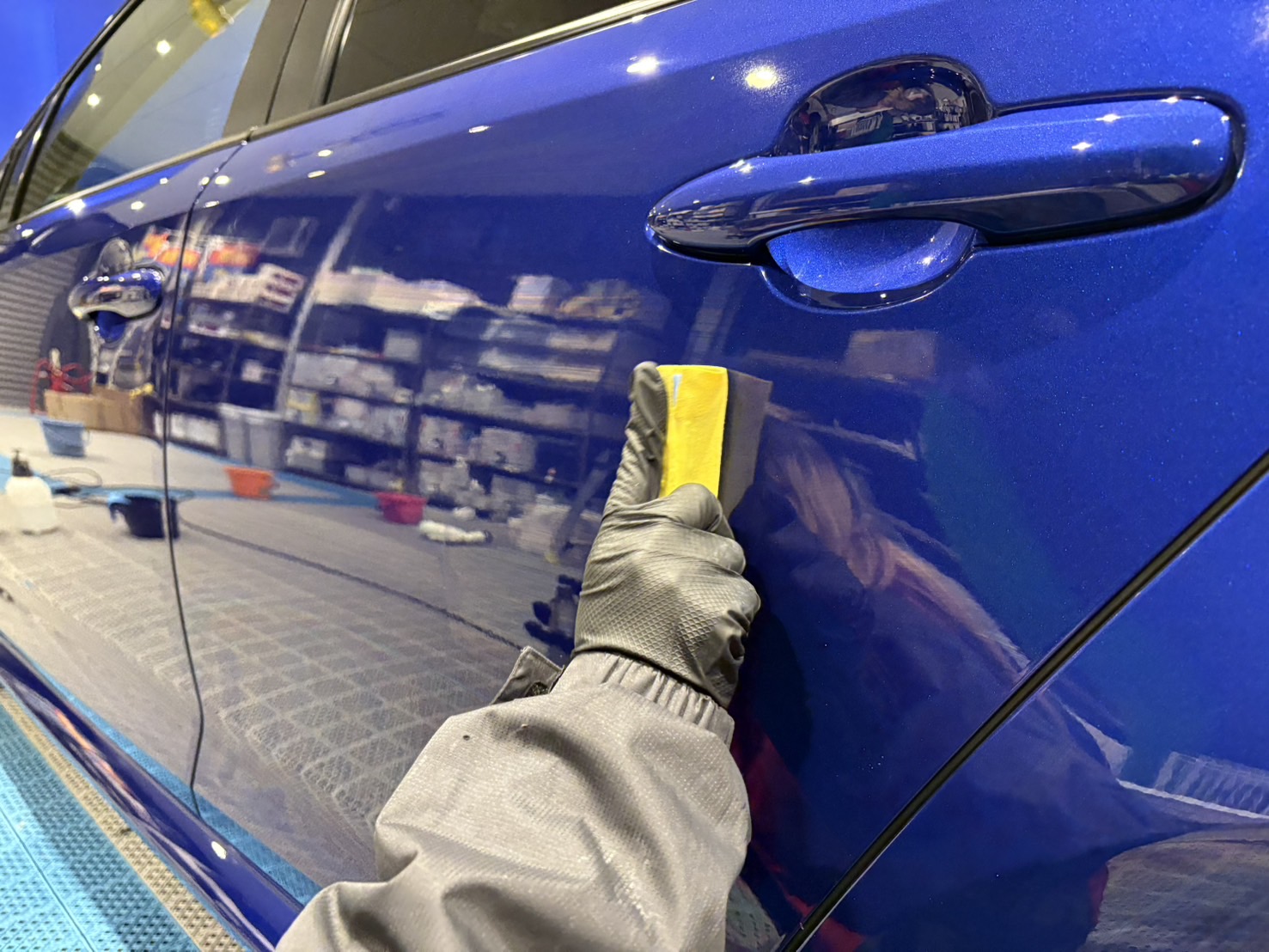 カーコーティング・洗車の作業時にはシートカバーとマットで大切なお車を丁寧に保護いたします!
